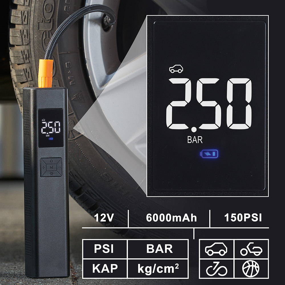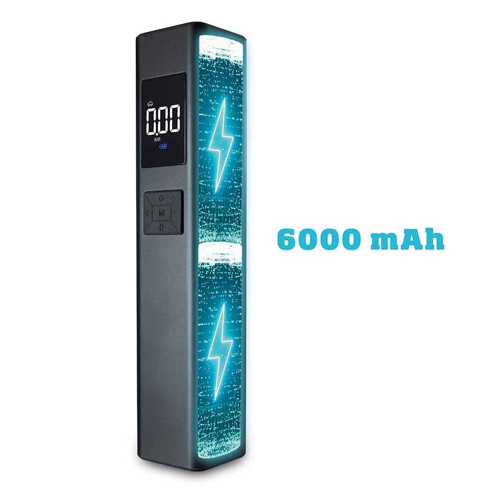 - Batterie li-ion de 6000 mA pour gonfler jusqu'à 4 pneus de voiture
