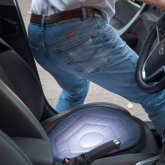 Que vous soyez à table, en voiture, ou au lit, il faut presque toujours faire un mouvement de torsion du haut du corps pour s’asseoir ou se lever. Avez-vous du mal à effectuer ce mouvement ? Le COUSSIN TOURNANT "SOFT" résout ce problème en accompagnant vos mouvements et prévient les contractures du dos et du bassin. Son emploi est simple comme bonjour : posez le coussin sur votre chaise, le siège de voiture ou sur le lit et asseyez-vous latéralement. Le mécanisme pivotant vous aide à placer les jambes sous la table, à les positionner sous le volant en voiture, ou encore à vous allonger sur le lit. De la même façon, le coussin vous aide à vous lever ou à sortir de la voiture ou du lit. Charge maximale 120 kg. Matière : face supérieure 100 % polyester ; face inférieure 100 % polyamide. Dimensions (ø x H) : 44 x 3 cm.