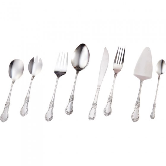 Een perfect gedekte tafel maakt van een lekkere maaltijd een feest voor alle zintuigen. Met de sierlijke arabesken-motieven aan het uiteinde van de greep zorgt dit 16-DELIG TAFELBESTEK subtiel voor een nostalgische vintage-look. Set voor 4 personen. Vaatwasserbestendig. Materiaal: roestvrij edelstaal.