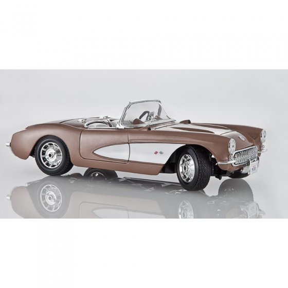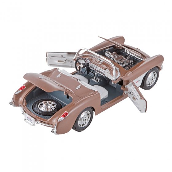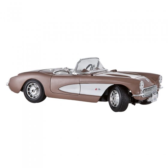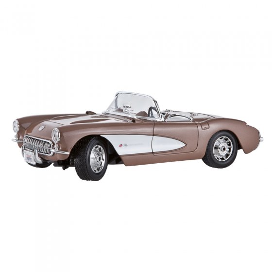 C'est la voiture de sport classique américaine par excellence, reproduite jusque dans les moindres détails à l'échelle 1:18. 6 339 pièces ont suffit pour assembler la CHEVROLET CORVETTE originale de 1957. Jusqu'alors, les chiffres des ventes étaient plutôt moyens, mais l'année 1957 a marqué un tournant. Cette voiture étaient enfin considérée comme une vraie voiture de sport. Modèle-réduit en zinc moulé sous pression. Portes, capot et coffre s'ouvrent comme sur l'originale et même la direction fonctionne. Un vrai petit bijou pour les collectionneurs et le cadeau parfait pour les amateurs de belles voitures. Dim. env. L 23 x l 10 x h 7,5 cm. Commandez la voiture de vos rêves sans plus attendre !