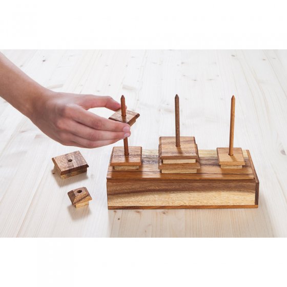 Ces 2 JEUX TOUR DE HANOÏ ET MASTERMIND sont de vrais jeux de réflexion. Pour le premier, il s’agit de déplacer la « Tour de Hanoï » qui, selon la légende, fut jadis réduite en poussière à peine reconstruite. La sagesse bouddhiste nous enseigne ici que la vie est difficile et éphémère. Sur le chemin de cette révélation, vous y jouerez des heures durant sans vous lasser ! Testez au cours d’une partie de « Mastermind » la capacité de logique de votre partenaire de jeu, qui doit deviner la couleur et l’ordre des pions que vous aurez soigneusement cachés... Très joli design en bois, livré avec tous les accessoires, coffret (dim. env. 24 x 9 x 6 cm) et plateau de jeu (12 x 20 x 4 cm). 2 jeux de réflexion intelligents et fascinants pour jouer seul ou à deux et faire marcher vos cellules grises !