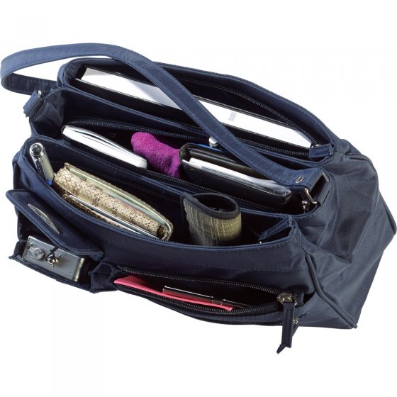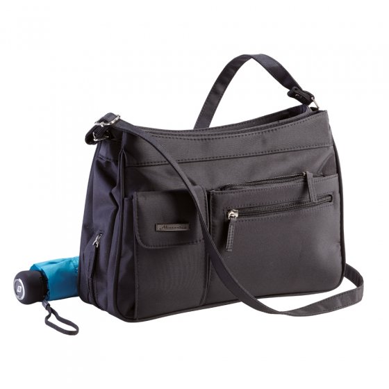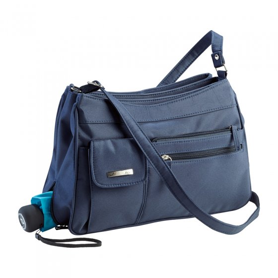 Diese sportive DAMENUMHÄNGETASCHE aus robustem, abwaschbarem Mikrofaserstoff ist ein idealer Urlaubsbegleiter und ein superschickes Accessoire für alle Tage! Eine Vielfalt an reißverschlussgesicherten Fächern sorgt für perfekte Organisation und schützt Wertsachen vor Langfingern. Besonderer Clou: In einem separaten Regenschirmfach lässt sich vorbeugend ein Klappschirm unterbringen! Praktische, kompakte Maße (ca. 33 x 23 x 10 cm) gehen Hand in Hand mit sehr intelligenter Aufteilung: Drei großzügige Reißverschlussfächer, davon eins mit Reißverschlusstasche und Handytasche mit Klettpatte; Schirmfach, drei Reißverschlusstaschen und eine Pattentasche außen. Verstellbarer Umhängegurt.