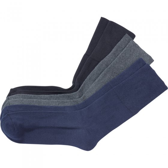 Dans ces CHAUSSETTES EN COTON AVEC SEMELLE EN ÉPONGE confortables, vos pieds se sentiront incroyablement à l'aise ! Le coton brossé de grande qualité assure un confort doux et laisse respirer la peau. La semelle en éponge vous protège parfaitement de la fraîcheur du sol et amortit vos pas. Le large bord ultra souple assure aux chaussettes un excellent maintien, tandis que la matière robuste (80 % coton, 15 % polyamide, 5 % élasthanne) est agréablement extensible pour une tenue lisse et sans plis ! Lavable en machine à 40 degrés. 6 paires de chaussettes bien-être dans 3 coloris classiques et faciles à associer, proposées à un prix de lot avantageux !
