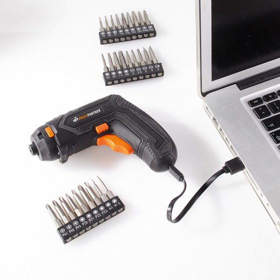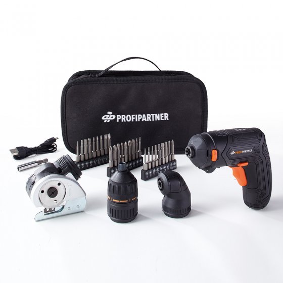 Accuschroevendraaier zijn een onmisbaar onderdeel geworden van het dagelijks leven in huis en voor ambachtslieden. Dat zo’n apparaat nog meer kan zijn dan een elektrische schroevendraaier, bewijst de 3-IN-1 ACCUSCHROEVENDRAAIER: Afhankelijk van de gemonteerde kop functioneert hij als een normale accuschroevendraaier met koppelinstelling, als een hoekschroevendraaier of als een snijgereedschap! Dankzij een verscheidenheid aan bits kan hij ook elk type schroef aan, van kruiskopschroeven met gleuf tot Torx-schroeven en inbusschroeven. De geïntegreerde 2-voudige LED-licht zorgt altijd voor de beste zichtomstandigheden. De batterij wordt opgeladen via USB (oplaadkabel meegeleverd). Afmetingen (l x b x h): ca. 11 x 4,5 x 11 cm. Uw nieuwe professionele partner als het op schroeven en snijden aankomt!