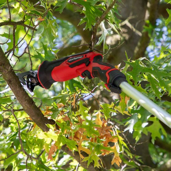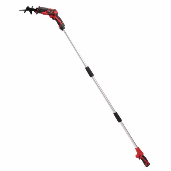 Scier des branches d'arbres, mettre en forme des arbustes qui poussent en hauteur ou tailler des plantes grimpantes sur le mur de la maison : La scie sabre rechargeable permet d'effectuer de tels travaux depuis le sol en toute sécurité ! Grâce à la poignée télescopique facile à installer (longueur maximale de 170 cm), vous n'avez pas besoin de monter sur une échelle branlante. Mais même sans manche, la scie sabre est un outil extrêmement pratique, car elle ne coupe pas seulement le bois, mais aussi le métal, le plastique et le plâtre. Raccourcir des tuyaux, découper des pièces en plastique - tout cela ne pose aucun problème. Dimensions sans manche, L x l x P : env. 38 x 7 x 18 cm. Avec rail de guidage (amovible) pour les branches et les tubes. Dépassez-vous en sciant !