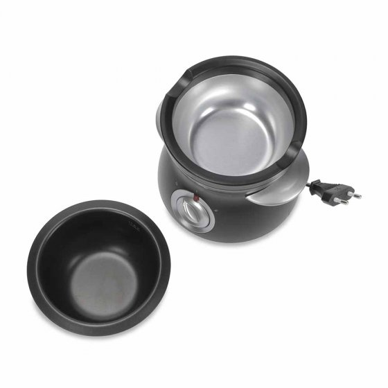Qu’il s’agisse d’une soirée conviviale en famille ou d’un moment créatif en pâtisserie, ce fondue au chocolat promet plaisir et inspiration. Plongez des fruits frais ou des biscuits dans un chocolat fondant et partagez des instants de joie. Avec 6 fourchettes, 2 niveaux de température et un bol compatible lave-vaisselle, la réussite de vos pralines, sauces ou décors en sucre est garantie. Dimensions (L x l x H) : env. 16 x 15 x 15 cm.