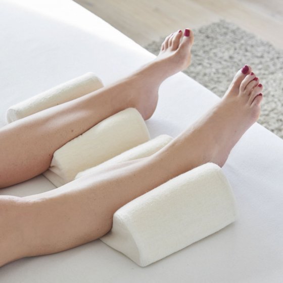 Pour plus de stabilité au niveau du dessous des cuisses ou -replié-. Délestage de la pression entre les jambes : l'oreiller genoux et talons offre un maximum de confort. Mousse à mémoire de forme. Dim. : (L x l x H): 26 x 20 x18 cm (fermé), 52 x 20 x 9 cm (ouvert). Couleur : écru. Matière : 100 % coton (enveloppe), mousse de polyuréthane (noyau).