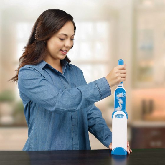 Les poils et les poussières sur les vêtements, meubles ou tapis font vraiment mauvais effet et peuvent aussi provoquer des troubles en cas d’allergie. Avec ses milliers de micro-poils, la brosse ramasse-poils "Fur Wizard" piège jusqu’aux plus petites particules de poussière. L’innovante station auto-nettoyante permet une réutilisation rapide. Une version réduite est fournie pour les déplacements : très pratique, la brosse Mini Hurricane "Fur Wizard" va dans un sac et rend de nombreux services en voyage. Dimensions (L x l x H) : 5 x 7,5 x 32 cm (version auto-nettoyante) ; 13 x 6 x 13,5 cm (version mini). Coloris : blanc, bleu.