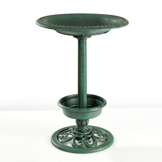 Ce joli bain d'oiseau semble directement sorti d'un parc victorien. D'aspect métallique, l'ABREUVOIR POUR OISEAUX AVEC JARDINIÈRE est un point de rencontre romantique pour tous les oiseaux et une belle décoration pour votre jardin ! Le pied est stable avec de ravissants ornements et supporte un bassin de taille généreuse. La jardinière circulaire autour du pied est idéale pour les plantations. Dimensions (Ø x H) : env. 50 x 70 cm. Polypropylène robuste et résistant aux intempéries. Un spectacle magnifique et un rafraîchissement idéal pour vos amis ailés !