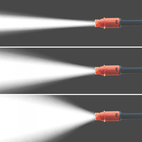 - 3 straalmodi: puntstraal, vlak of sproeistraal