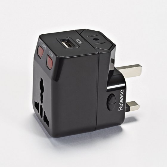 Chaque pays a ses propres normes en termes de prises secteur : et si vous voyagez souvent, vous n’êtes pas sans savoir que les prises françaises ne sont pas adaptées à certains autres pays, ce qui peut rendre le chargement de votre caméra numérique ou l’utilisation d’un sèche-cheveux en vacances très problématiques sans adaptateur. Avec notre ADAPTATEUR SECTEUR UNIVERSEL, fini le casse-tête des prises ! Cet adaptateur vous permet de vous brancher dans 150 pays répartis sur 5 continents ; vous n’aurez plus besoin d’autres adaptateurs. Un port USB intégré vous permet même de recharger la batterie de votre tablette ou de votre smartphone ! Grâce à son double fusible 3 A intégré à l’adaptateur, vous évitez tout danger. Dim. (L x l x H) : env. 6 x 5,4 x 5,8 cm. Aux États-Unis, en Chine ou aux Maldives... restez branché partout, quelle que soit votre destination !