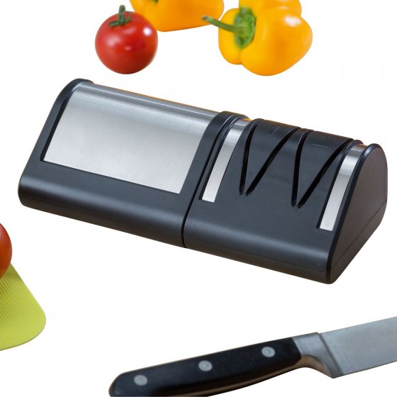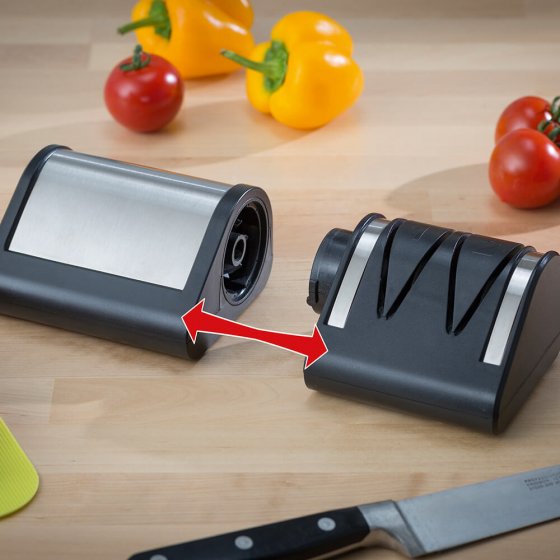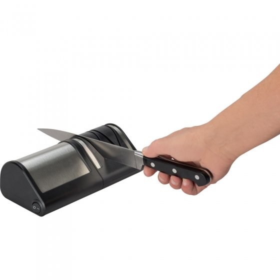 Même les couteaux haut de gamme finissent tôt ou tard par s'émousser. Avec l'AIGUISEUR ÉLECTRIQUE 2 PHASES, c'est un jeu d'enfant de remettre vos lames en état : les meules rotatives recouvertes de poudre de diamant synthétique rendent à tous les couteaux lisses un tranchant digne d'une lame de rasoir ! La première phase (affûtage grossier) consiste à redresser la lame et aiguiser grossièrement le fil ; la seconde (affinage) est consacrée au polissage. La dureté des lames n'a aucune importance – vous pouvez même aiguiser les couteaux en céramique. Les fentes de guidage orientent les lames dans la position correcte pour l'affûtage. Dimensions (L x l x H) : env. 7 x 21 x 10 cm. Alimentation secteur 230 V. Transformez vos couteaux en outils de précision !