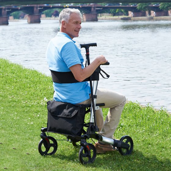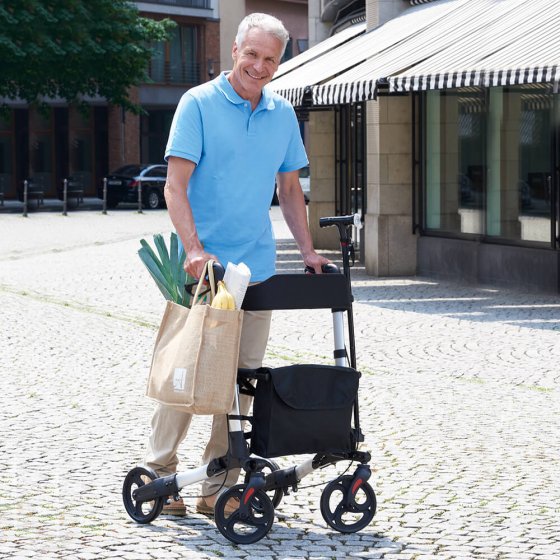 Als iemand niet goed kan lopen, is wandelen een uitdaging. Dankzij deze stabiele rollator en het lichte aluminium frame zijn stoepranden nu gemakkelijk berijdbare obstakels! De voorste rubberen wielen zijn zwenkbaar (360°), de grotere afstand tussen de achterste wielen zorgt voor maximale beenruimte. Inclusief afneembare draagtas (Oxford polyester). Het mobiliteitshulpmiddel kan snel in de transporttas worden opgeborgen door het eenvoudige inklapmechanisme en de inklapbare wielen. EXTRA: tas met schouderband, wandelstokhouder en transporttas.