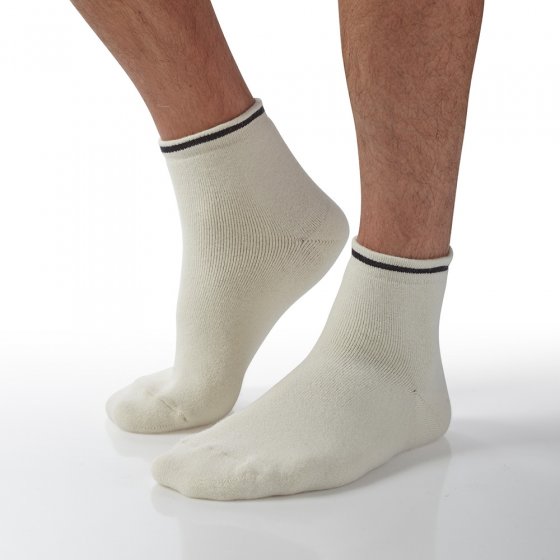Koude voeten zijn funest voor een gezonde nachtrust. Daarom komen deze ANGORA-BEDSOKKEN als geroepen. Ze houden u de hele nacht lang prettig warm en voelen heerlijk zacht aan. Dat ligt aan het hoge percentage angorawol. Door de zeer fijne en lange vezels ontstaat een warmhoudend luchtkussen. Bovendien is dit chique garen sterk ventilerend en zweetabsorberend. De bedsokken hebben een met de hand afgehechte punt en een softband, zodat niets schuurt of knelt. Ze zijn gemaakt van 45% angora, 28 % scheerwol, 25% polyamide en 2% Elastan en zijn wasbaar op 30 °C. Gewoon perfect voor koele nachten.