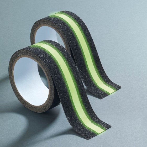 In het huishouden en de tuin gebeuren de meeste ongelukken, vaak met ernstige volgen. Verklein het gevaar op treden, overlopen en huishoudtrapjes met de 6 meter lange ANTISLIPBAND MET LICHTSTREEP. Deze is uitgevoerd met een bijzonder, ruw oppervlak, zodat u altijd veilig loopt, bijvoorbeeld op het herfstig natte trappetje in de tuin. Ook de keldertrap kunt u nu ‘s avonds rustig aflopen, want de fluorescerende middenstreep verlicht de treden, en toont u de juiste weg. Dit veilige hulpmiddel is zelfklevend, waterbestendig en op maat te snijden. Ook handig voor trappen en ladders. Leveringssamenstelling: 2 rollen. Breedte ca. 5 cm. Lengte: telkens 3 m. Maak uw huis veilig, waar u gaat of staat.