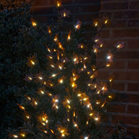 Vous allez en n pouvoir admirer des arbres en « ? eurs » ! Et ce, où vous le souhaitez : dans votre salon, sur le balcon ou la terrasse. Ces ARBRES D’EXTÉRIEUR ÉCLAIRÉS À PILES sont en effet mobiles, ils résistent aux intempéries et n’ont pas besoin de prise de courant ! Choisissez celui que vous préférez : à 60 LED et feuilles rouge ? amboyant (env. 90 cm de haut) ou à 120 LED et feuilles jaune ambré lumineux (env. 150 cm de haut) : avec leurs points lumineux scintillants, ils offrent un spectacle féerique pour vos fêtes de famille ou soirées romantiques à deux. 8 modes d’éclairage à sélectionner selon l’atmosphère que vous souhaitez créer : éclairage continu ou éclairage doux s’allumant et s’éteignant lentement, ou encore un clignotement joyeux. Grâce à la minuterie, ces arbres s’allument automatiquement 4 heures par jour : les piles peuvent ainsi durer jusqu’à 30 jours ! Leurs branches souples se plient individuellement. Fonctionnent avec 4 piles AA (vendues séparément). Des objets de déco lumineux dont le spectacle fait particulièrement du bien pendant les mois d’hiver !