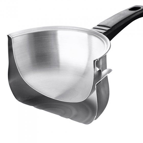 Nooit meer overkoken of aanbranden. Zelfs ingewikkelde desserts, zuivelgerechten en hollandaisesaus zijn geen probleem. Deze praktische AU BAIN-MARIEPAN kookt volgens het beproefde au bain marie-principe, waarbij de warmte bijzonder voorzichtig wordt overgedragen. Vul eenvoudig de dubbelwandige pan met water om alle soorten voedsel voorzichtig op te warmen, diepvriesproducten te ontdooien, chocolade en couverture te smelten enz. Afmetingen (Ø x H): ca. 17 x 10 cm, inhoud 1 L. Geschikt voor alle warmtebronnen. Gemaakt van hoogwaardig roestvrij staal. Melk koken op deze manier is de toekomst – veilig en met een "dubbele bodem"!