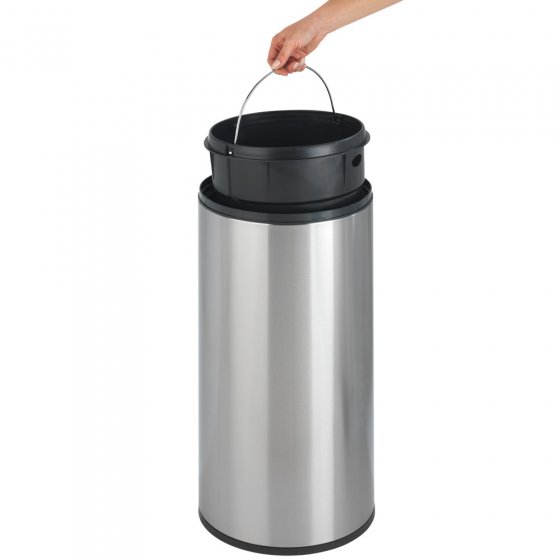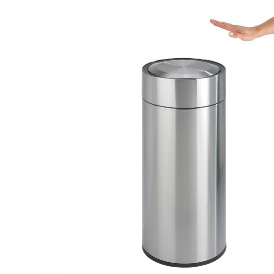 Schoner en hygiënischer kan haast niet: de AUTOMATISCHE AFVALBAK MET SENSOR is te openen en te sluiten zonder uw handen of voeten te gebruiken, zonder de deksel omhoog te doen of een voetpedaal te gebruiken! Het geheim is een combinatie van een elektrisch omhoogklapmechanisme en een innovatieve sensortechniek, die reageert wanneer u in de buurt komt. Ook is het mogelijk de bak te openen met één druk op de knop. De hoogwaardige behuizing is gemaakt van gematteerd edelstaal, binnenin bevindt zich een uitneembare zwarte kunststof emmer. Buitenafm.: Ø ca. 32 cm, hoogte ca. 69 cm. Volume: ca. 30 l. Werkt op 4 mono-batterijen (afzonderlijk te bestellen). Met dit product uit de topklasse hebt u de handen vrij voor belangrijkere zaken.