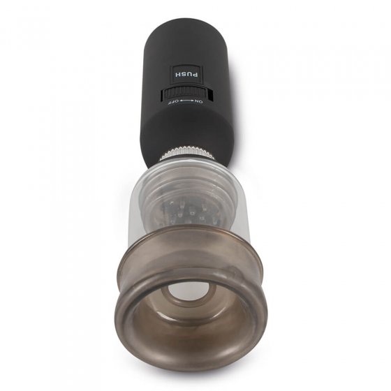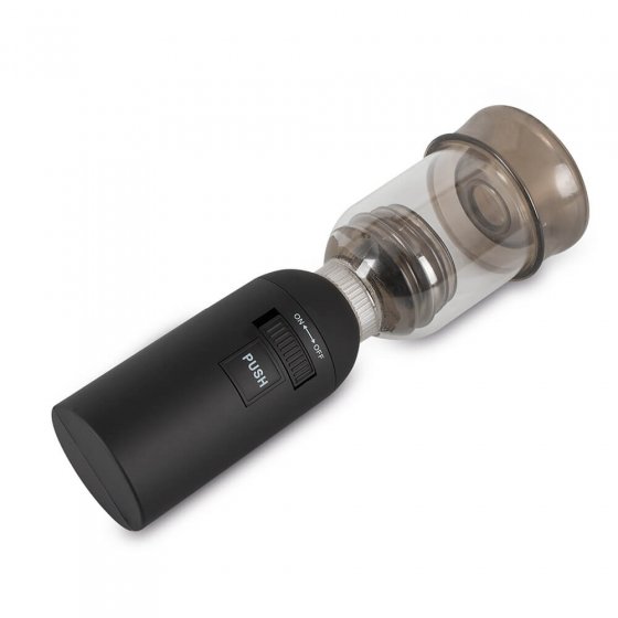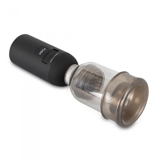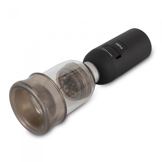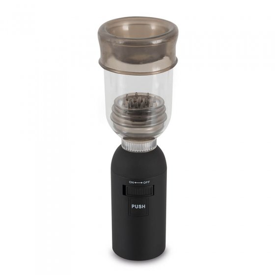 De punt van de penis, dus de eikel, is ongetwijfeld de meest erogene zone van de man. Met de AUTOMATISCHE EIKELPOMP met zachte genotsnoppen kunt u de eikel op unieke wijze stimuleren: steek de eikel in de flexibele sleeve en activeer de pomp. U voelt dan direct een aangenaam zuiggevoel dat gepaard gaat met zachte trillingen. Een mooi neveneffect: de negatieve druk die ontstaat tijdens het zuigen zorgt ervoor dat de eikel een beetje opzwelt – hij wordt dik en vol! Met de ’Push’-knop kan de onderdruk worden geregeld en ook volledig worden opgeheven. Werkt op 2 AA-batterijen (afzonderlijk te bestellen). Afmetingen: totale lengte ca. 24 cm (lengte sleeve ca. 11 cm), Ø aan de buitenkant ca. 6 cm. Genieten is hiermee geen punt!