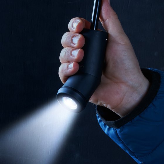Wat is van belang voor een goede paraplu? Aan de ene kant natuurlijk waterdichtheid en stabiliteit, maar aan de andere kant ook een goed gebruiksgemak. De AUTOMATISCHE PARAPLU MET 180°-ZAKLAMP is een echt rolmodel: hij opent en sluit automatisch met een druk op de knop, en onderaan de handgreep bevindt zich een zwenkbare lichtbron (knoopcelbatterijen inbegrepen). Zo kunt u elke plas of stap in het donker zien! Dankzij de speciale vouw sluit hij ook zonder druppen. Het spreekt vanzelf dat hij ook zeer robuust is: de skeletconstructie bestaat uit 8 metalen baleinen van glasvezel. Afmetingen: diameter paraplu (open) ca. 95 cm, lengte ca. 57 cm (gesloten ca. 32 cm). U kunt het weer en de duisternis bijna niet beter trotseren!