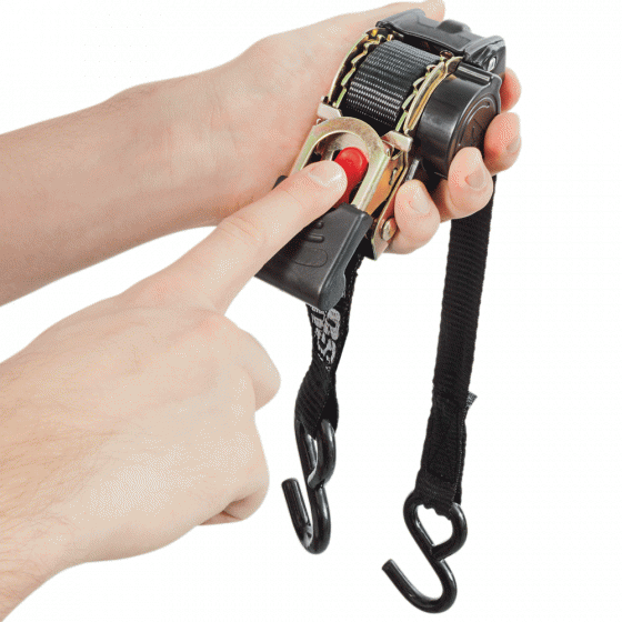 indrukken – meteen rolt de robuuste nylon-gordel automatisch op. De baat