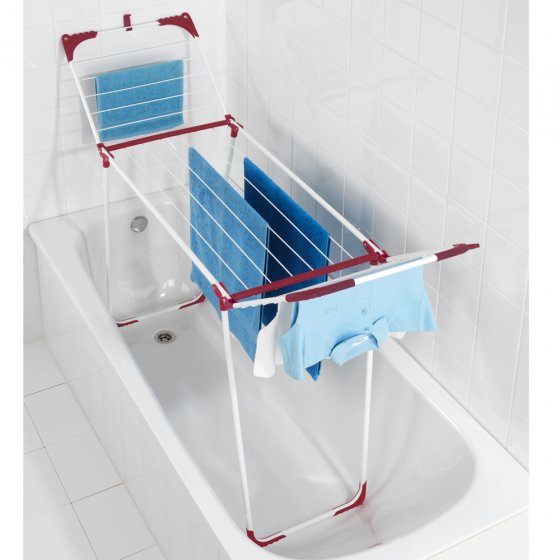 Geen plaats voor een droogrek? Met dit badkuip-droogrek wordt de badkuip een ’droogdok’.