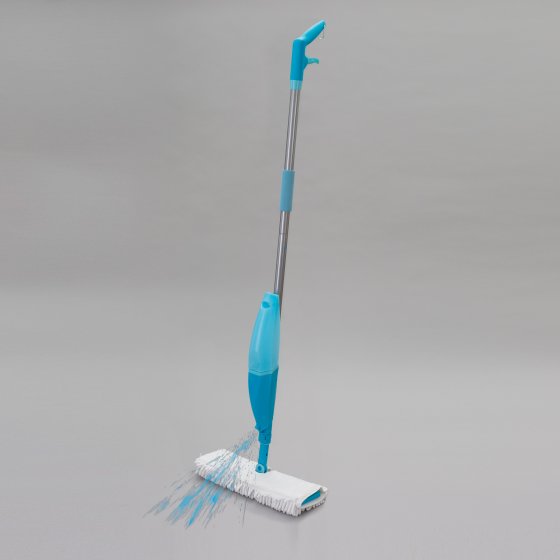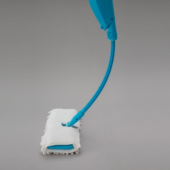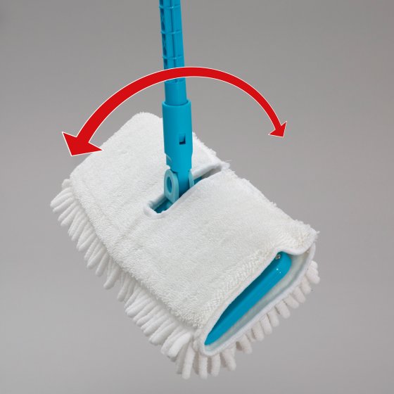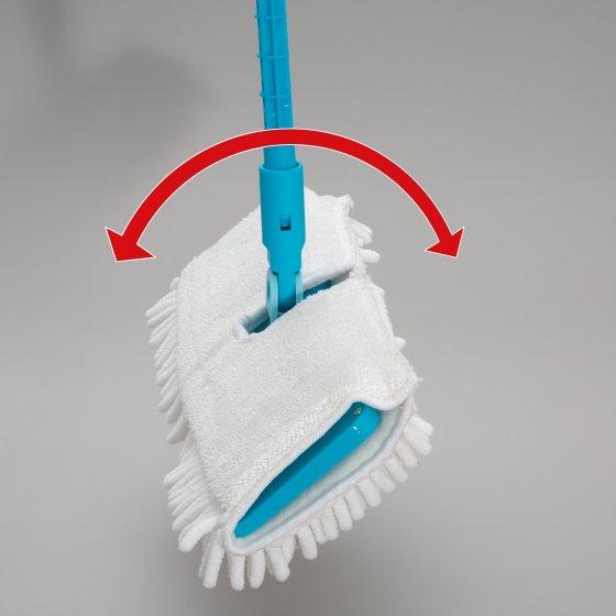 Oubliez votre seau d'eau pour faire vos sols – et épargnez-vous la peine de vous baisser pour essorer la serpillière ! Le nouveau BALAI VAPORISATEUR FLEXIBLE est équipé d'un réservoir d'eau à partir duquel vous pouvez humidifier le sol confortablement sans vous pencher. Il suffit pour cela d'actionner le levier sur la poignée, puis de passer la serpillière mouillée et enfin de tourner la tête de balai pour sécher immédiatement le sol avec l'autre face en fibres ultra-absorbantes de polyester et de polyamide. Tout aussi efficace sur les carrelages lisses, parquets et sols stratifiés que sur les revêtements rugueux en pierre. Et avec le manche télescopique flexible, vous passez même sans effort sous le canapé ou le buffet. Adieu le balai-brosse et la serpillière !