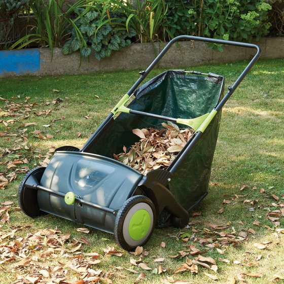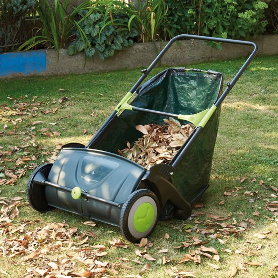 On s'évertue à balayer les feuilles en faisant de grands efforts pour se baisser, et au premier coup de vent, on peut recommencer à zéro. Laissez la BALAYEUSE À GAZON MANUELLE faire le travail pour vous ! Les brosses à rotation rapide ramassent au passage les feuilles, l'herbe coupée et autres petits déchets – sans électricité ! – et les évacuent dans le bac collecteur facile à vider. Les grandes roues (Ø 25 cm) et la poignée en acier laqué rendent les manœuvres faciles, même quand vous nettoyez l'entrée de garage. La grande largeur de balayage d'env. 54 cm réduit le temps de travail à un minimum. Dimensions (L x l x H) : env. 110 x 68 x 77 cm. Hauteur des brosses / distance au sol réglable : 3 – 35 mm. Dès maintenant, les feuilles et les déchets sur le gazon ne sont plus un souci pour vous !