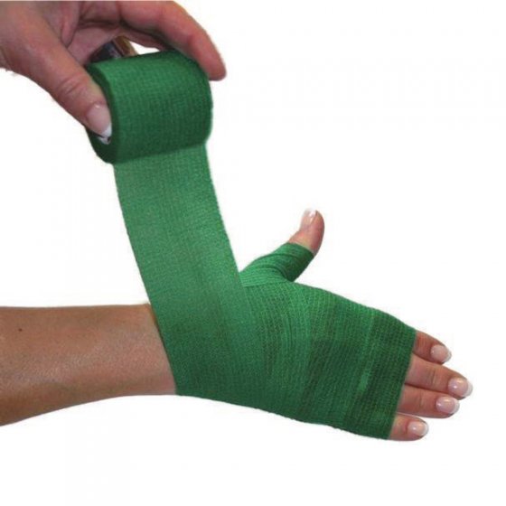Ces bandes en coton auto-adhésives sont véritablement polyvalentes. Elles sont hyperélastiques, réutilisables et sans colle. Le bandage tient sans difficulté à l’endroit souhaité grâce au revêtement en latex. Matière respirante à bonne tolérance cutanée, 98 % coton et 2 % élasthanne. Coloris et dimensions (L x l) : jaune : 4,5 m x 2,5 cm ; vert : 4,5 m x 5 cm ; rouge : 4,5 m x 7,5 cm.