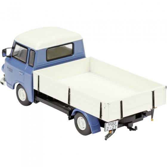 Der Barkas B 1000, Kleintransporter-„Bestseller“ des sächsischen Automobilherstellers VEB Barkas-Werke Karl-Marx-Stadt, war ebenso gefragt wie vielseitig. Es gab ihn in schier zahllosen Varianten – vom Pritschenwagen bis zum Militärtransporter. So groß die Nachfrage indes war: Aufgrund planwirtschaftlicher Limitierungen konnte man in der ehemaligen DDR weder ausreichend viele B-1000-Transporter bauen noch die Preise entsprechend anpassen. So blieb der Barkas B im wahrsten Sinne ein „Tausendsassa” – denn mehr als rund tausend Stück pro Jahr liefen nicht vom Band. Zwei Varianten – die BARKAS B 1000 FEUERWEHR und der BARKAS B 1000 PRITSCHENWAGEN– sind jetzt als Modelle im Sammler-Maßstab 1:43 erhältlich. Jedes der beiden Modelle ist detailgenau gearbeitet; die Karosserie aus Zinkdruckguss ist jeweils mit Anbauteilen aus Kunststoff versehen. Sichern Sie sich den „Bulli des Ostens“ am besten sofort – denn von den 1:43-Modellen gibt’s getreu der Barkas-Tradition auch nur jeweils 1.000 Stück!