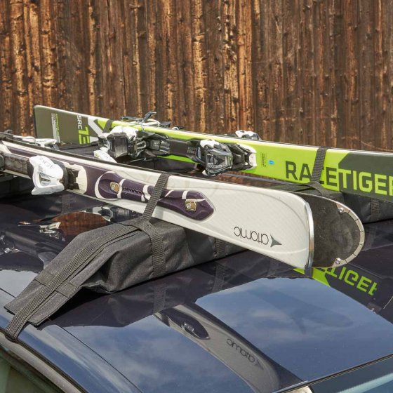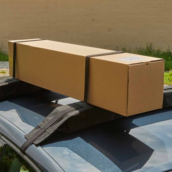 Escabeau en aluminium, sapin de Noël, table à tapisser ou cartons encombrants : de nombreux objets qu'on doit parfois transporter à l'improviste sur une petite distance ne vont pas dans le coffre de voiture. Pour tous ces cas, les BARRES DE TOIT UNIVERSELLES sont des accessoires incroyablement pratiques – ils sont vite installés sur la toit de la voiture, sans outils ni rails ni galerie, et supportent une charge de 75 kg. Les sangles de fixation indéchirables et résistantes à l'eau (2 sangles de 350 cm de long) maintiennent les barres et le chargement en place ; la peinture est protégée par le rembourrage de mousse. Dimensions de chaque barre (L x l x H) : env. 85 x 10 x 8 cm. Longueur des sangles : env. 170 cm chacune. Matière : tissu Oxford 600D résistant à l'eau. La solution la plus simple et la plus flexible pour transporter les chargements encombrants d'un endroit à l'autre !