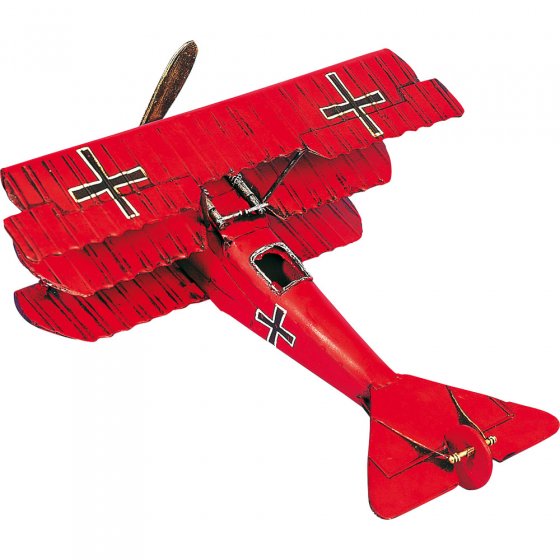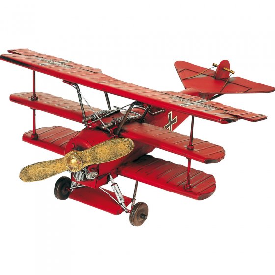 Hij geldt met 80 bevestigde voltreffers als een van de beste onderscheppingspiloten van de Eerste Wereldoorlog: Manfred van Richthofen, de 'Rode baron'. Met het BLIKKEN MODEL FOKKER 'RODE BARON' wordt de door kameraden geëerde en door tegenstanders gerespecteerde vlieger een indrukwekkend eerbetoon gegeven: het vliegtuig is met de hand gemaakt en is hier met de hand beschilderd in authentieke antiek-look. De rustieke verwerking en de kunstig gemaakte 'gebruikssporen' geven hem een charmante look. De wielen en de propeller zijn draaibaar. Afm. (lxbxh): ca. 37 x 16 x 36 cm. Haal dit aandenken aan een echte held in huis!