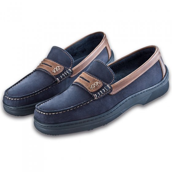 Opdat u altijd de wind in de rug heeft: deze BOOTMOCASSINS VAN GLAD EN NUBUCKLEER zijn populair voor de mooiste tijd van het jaar, zitten goed en lopen licht zowel in de stad als aan het strand. Door de combinatie van glad – en nubuckleer zien ze er echt sportief uit. Ze zijn ongevoerd, zacht en makkelijk te onderhouden (gewoon met borstel of vlakgom reinigen), u zult er enthousiast over zijn. De halve binnenzool van leer met voetbed rust op een tussenlaag van schuimrubber waardoor hij erg makkelijk zit. Antislip „Contact“-zool van thermoscaoutchouc, van hand genaaid bovenleer. Van de uitstekende prijskwaliteit verhouding kunnen alleen Eurotops-klanten profiteren.