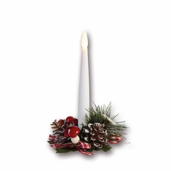 Profitez de l’ambiance magique des fêtes de Noël sans vous soucier des bougies qui brûlent : les BOUGIES LED SUR ARRANGEMENT DÉCORATIF, vendues par 2, sont une décoration festive qui éclaire sans flamme. Les compositions de Noël avec lumière douce LED font régner dans votre maison une atmosphère accueillante et festive. Pour l’intérieur. Dimensions (H) : env. 10 cm. Une décoration ravissante qui fera le plaisir de vos invités !
