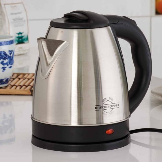 La BOUILLOIRE EN INOX porte l'eau à ébullition bien plus vite qu'une casserole – et, de plus, elle est sûre d'utilisation grâce au couvercle verrouillable et à la protection anti-surchauffe. Le corps en acier inoxydable brossé AISI-304 (avec poignée en plastique) a un style intemporel qui va dans toute cuisine. Dimensions (Ø x H) : env. 15 x 19 cm. Alimentation secteur 230 V. Économisez du temps et de l'électricité quand vous faites bouillir de l'eau !