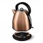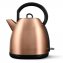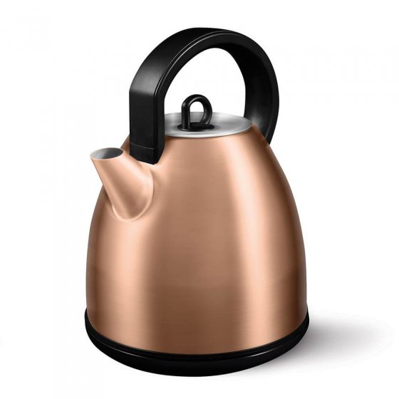 La BOUILLOIRE STYLE RÉTRO en inox est le point d’attraction de votre cuisine. Avec sa forme classique et sa couleur cuivrée chatoyante, on pourrait croire qu’il s’agit d’un héritage du siècle passé – alors qu’en fait, elle est équipée de technologies dernier cri. Grâce à son point de contact central, la bouilloire peut tourner sur le socle dans toutes les positions et il n’est pas nécessaire de corriger la position en la posant. Le voyant bleu sur l’interrupteur indique le statut opérationnel ; l’appareil est protégé contre la surchauffe et la marche à sec. Capacité impressionnante de 1,7 litre. Dimensions (Ø x H) : env. 21 x 24 cm. Alimentation secteur 230 V. Misez sur le look cuivre tendance pour faire resplendir votre cuisine !