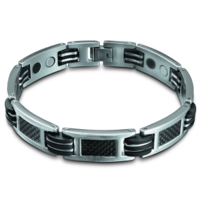 Les aimants intéressent les hommes depuis la nuit des temps ! Il y a 2 000 ans, les Chinois lui attribuaient un pouvoir de guérison. Nos clients sont nombreux à ne jurer que par lui. Ce BRACELET CARBONE MAGNÉTIQUE exclusif dissimule 7 aimants rares en néodyme de 2 400 Gauss chacun et au pouvoir aimanté exceptionnel. 7 petites plaques de germanium, un métal rare auquel on prête des effets très positifs, viennent s’insérer entre les aimants. Ce bracelet hors du commun d’env. 22 cm est en acier inoxydable avec des parties en carbone. Ne convient pas aux femmes