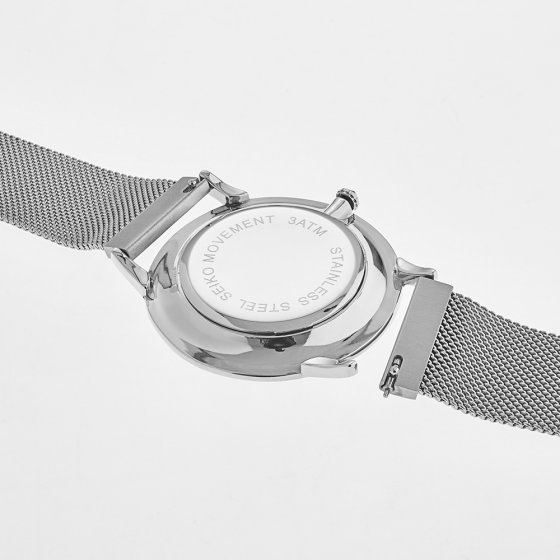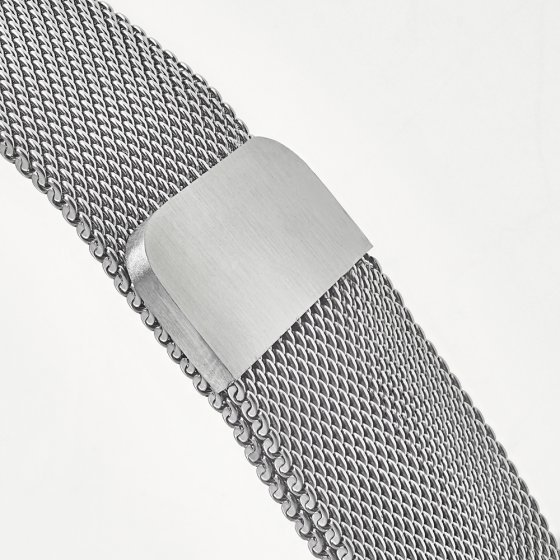 Rien ne fait plus distingué sur une montre qu’un bracelet en maille milanaise fine ! Le maillage milanais fut créé à Milan et désigne un bracelet métallique à mailles entrelacées – ces bracelets firent leur première apparition en Italie vers la fin du 19e siècle. Le BRACELET MILANAIS À FERMOIR MAGNÉTIQUE ennoblit votre montre ; il est à la fois très fin et robuste et se décline en 3 couleurs (argent, or, noir) et 2 largeurs (largeur de l’attache 20 mm ou 22 mm). Il va sur tous les poignets grâce au fermoir magnétique ajustable en continu. Matière : acier inoxydable. Longueur : env. 23 cm. Rehaussez le look de votre montre !