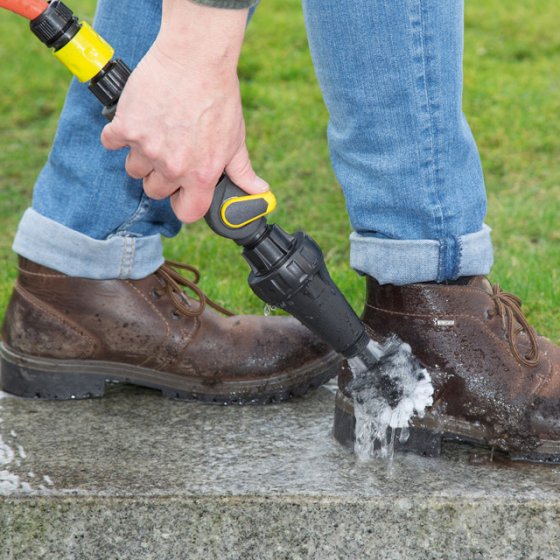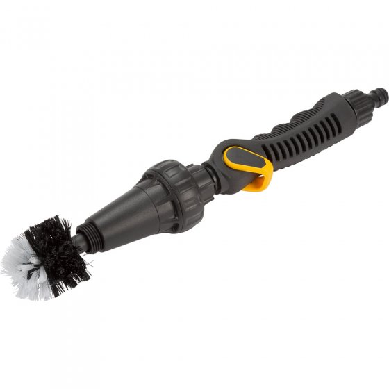 Les saletés incrustées sur les meubles de jardin, bottes de jardinage ou rebords de fenêtre disparaissent désormais sans effort grâce à la BROSSE DE LAVAGE ROTATIVE ! Elle fonctionne selon un principe innovant de turbine et s'adapte sur tous les raccords ordinaires de tuyau d'arrosage. Ouvrez le robinet et la brosse se met à tourner sous la pression de l'eau. Parfaite pour toutes les surfaces irrégulières comme les dalles ou les briques. La brosse est munie d'un régulateur manipulable d'une seule main pour une utilisation facile. Livrée avec embout de rechange multifonction doté de 7 modes d'arrosage. Matière : ABS, TPE & PVC. Dimensions (Ø x L) : 7 x 40 cm (brosse) ; 26 cm (buse). Cette brosse rotative vient à bout de toutes les saletés !
