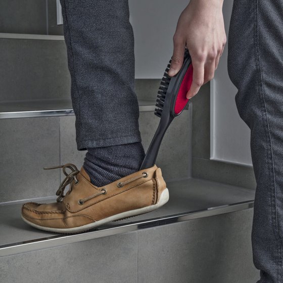 3 accessoires utiles en un pour prendre soin de votre garde-robe : la robuste brosse à habits 3 en 1 économise de la place et vous évite la recherche fastidieuse de "l’outil" approprié. Une face est munie de poils souples pour le nettoyage des textiles, l’autre face "aspire" les petites et grosses bouloches en un tour de main. La poignée est un chausse-pied à part entière. Matière : PP. Dimensions (L x l x H) : 26 x 6 x 4 cm. Couleur : noir, rouge.