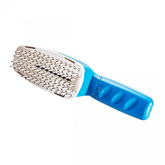 Même les passionnés de chiens sont bien obligés d'admettre que les poils de leurs amis sentent parfois très fort. La BROSSE IONISANTE POUR ANIMAUX a une action double contre les émanations désagréables : d'une part en éliminant les saletés du pelage par le brossage, et d'autre part en libérant de l'ozone ionisant qui combat les mauvaises odeurs. Fini la puanteur ! La brosse est conçue de manière à permettre l'élimination facile des poils en soulevant le plateau. Dimensions (L x l x H) : env. 6 x 7 x 22 cm. Fonctionne avec une pile de 9V (vendue séparément). Pour le plus grand plaisir de votre animal – et de tous les habitants de la maison !
