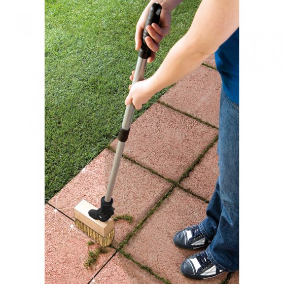 Plus besoin de vous mettre à genoux pour vous débarrasser des mauvaises herbes ! Cette BROSSE POUR JOINTS stable vous permet d’éliminer de manière fiable et précise les herbes et la mousse tenaces entre les dalles, sans vous pencher. Son manche télescopique (env. 130 cm max.) vous permet de travailler dans une position confortable, qui ménage votre dos ainsi que vos genoux et vous fatigue donc moins ! Ses poils en laiton solides se faufilent dans les joints et éliminent les mauvaises herbes, sans effort et de manière durable. Conception très solide : manche en acier, brosse en bois et poils en laiton de grande qualité (hauteur : env. 10,5 cm). Un outil de jardin efficace et très agréable à utiliser !