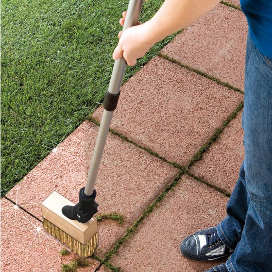 Plus besoin de vous mettre à genoux pour vous débarrasser des mauvaises herbes ! Cette BROSSE POUR JOINTS stable vous permet d’éliminer de manière fiable et précise les herbes et la mousse tenaces entre les dalles, sans vous pencher. Son manche télescopique (env. 130 cm max.) vous permet de travailler dans une position confortable, qui ménage votre dos ainsi que vos genoux et vous fatigue donc moins ! Ses poils en laiton solides se faufilent dans les joints et éliminent les mauvaises herbes, sans effort et de manière durable. Conception très solide : manche en acier, brosse en bois et poils en laiton de grande qualité (hauteur : env. 10,5 cm). Un outil de jardin efficace et très agréable à utiliser !