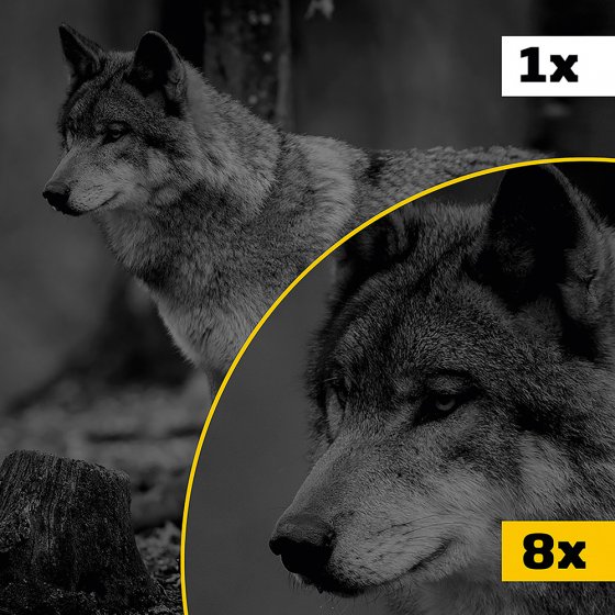 Avoir la vision d'un aigle pendant la journée et les capacités de vision nocturne d'une chouette – qui n'en a jamais rêvé ? Avec la CAMÉRA ENREGISTREUSE INFRAROUGE, c'est désormais possible : à la lumière du jour, le zoom optique x 10 et le zoom numérique x 8 vous aident à voir infiniment loin ; et dans le noir, la lampe LED infrarouge permet de voir jusqu'à 300 m toutes les choses qui restent cachées à l'œil humain. Et tout ce que vous voyez peut être enregistré – comme photo ou vidéo. Sur l'écran couleur de 7,6 cm, vous pouvez visionner confortablement les enregistrements ou les regarder plus tard. Alimentation par batterie li-ion, rechargeable par USB type C (câble de charge inclus). Dimensions (L x l x H) : env. 14 x 12 x 2 cm. Découvrez plein de choses de jour et de nuit !
