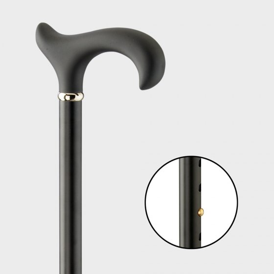Idéale pour garder l’équilibre et soulager les jambes fatiguées : la canne "Soft-Ergonomic-Derby" est très stable et ne se contente pas d’assurer votre sécurité à chaque pas ; elle est de surcroît vraiment superbe. La poignée ergonomique Derby en acétate est très agréable à la main avec son revêtement souple velouté. La hauteur du fût satiné est réglable sur 11 niveaux. Bague de laiton chromé et embout caoutchouté. Couleur : noir. Matière : aluminium, laiton, caoutchouc. Longueur : 75 – 100 cm. Poids : env. 410 g.