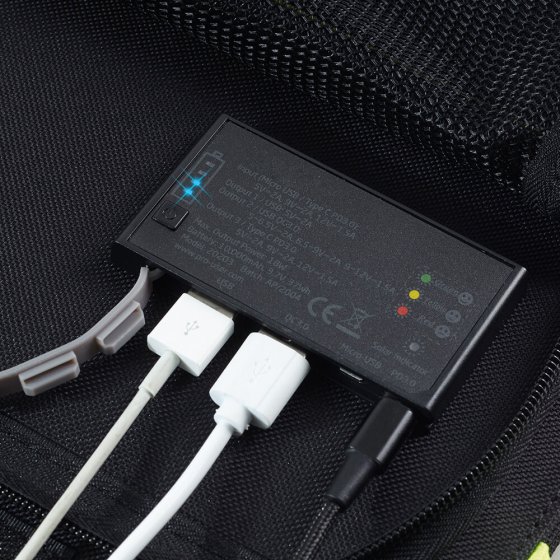 - Pochette intégrée zippée pour vos câbles de charge