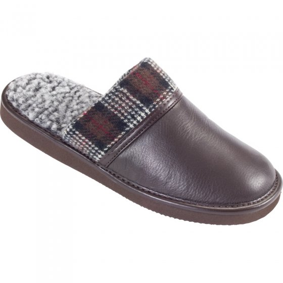 Le cuir de vachette souple et nervuré s'adapte parfaitement à vos pieds et rend ces chaussons luxueux particulièrement solides et résistants. Une doublure thermique en fausse fourrure vous assure une chaleur agréable. Le talon matelassé est muni d'un absorbeur de chocs : un grand soulagement pour les pieds fatigués ! Ces chaussons confortables n'en demeurent pas moins très légers, vous les sentirez à peine !§• Dessus 100 % cuir, bande contrastante à carreaux, doublure et semelle intérieure en tissu chaud, semelle d'usure antidérapante en synthétique
