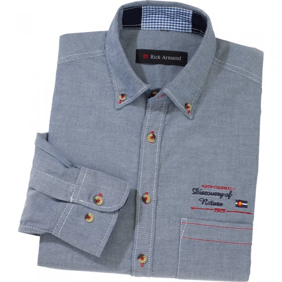 Le tissu solide Oxford est un classique parmi les tissus de chemises sportives. Des détails originaux donnent à notre CHEMISE OXFORD un côté moderne et nouveau : des finitions contrastantes à la patte boutonnée et à l'intérieur du col, une broderie sur la poitrine, des coutures de couleur au niveau des boutonnières et de la poche poitrine ainsi que des boutons à motif discret lui donnent des accents modernes. 100% coton, lavable en machine. Col à pointes boutonnées, poche poitrine, base arrondie, plis au dos, largeur des poignets réglables. Avec cette chemise, vous êtes à la mode et vous affirmez votre style.
