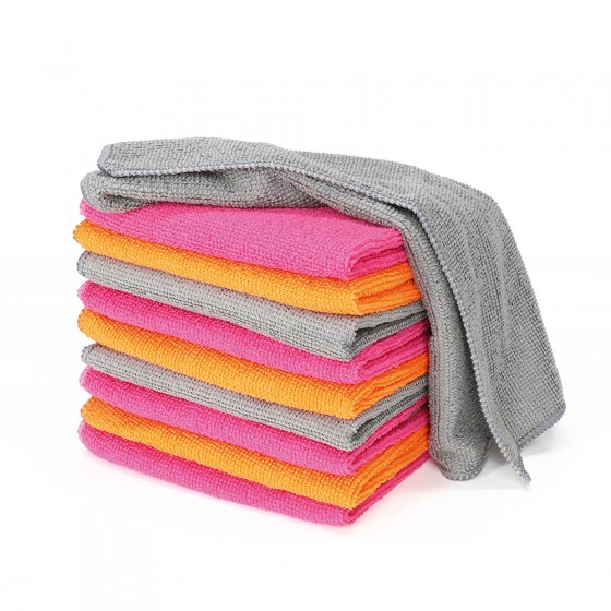 Ultra absorbantes, ultra efficaces : ces CHIFFONS EN MICROFIBRE par lot de 10 pièces sont à votre service dans toute la maison : en tant que chiffon sec, chiffon de dépoussiérage et de nettoyage. Grâce à leur fonction antistatique, ils retiennent même les plus petites particules de saleté et de graisse et sont bien plus absorbants que les chiffons en microfibre habituels. Le lot est disponible en trois couleurs, ce qui vous permet d'attribuer une "tâche" à chaque couleur. Que ce soit pour nettoyer la salle de bain et les toilettes, pour faire la poussière, pour nettoyer les fenêtres ou pour nettoyer la voiture. Dimensions de chaque chiffon : env. 30 x 30 cm. 90 % polyester, 10 % polyamide microfibre, lavable en machine à 40 °C. Misez sur la microfibre pour un maximum de propreté !