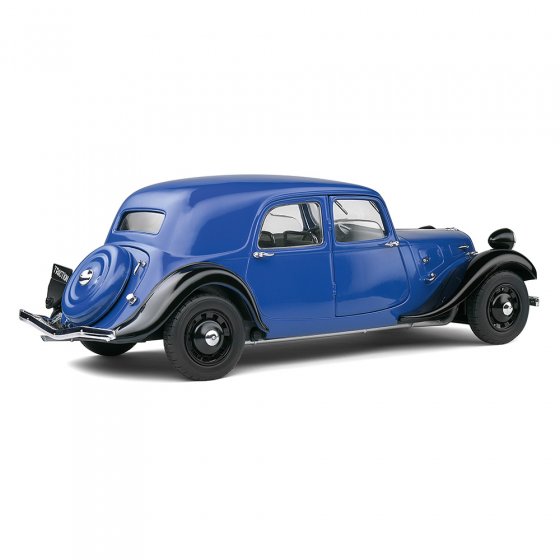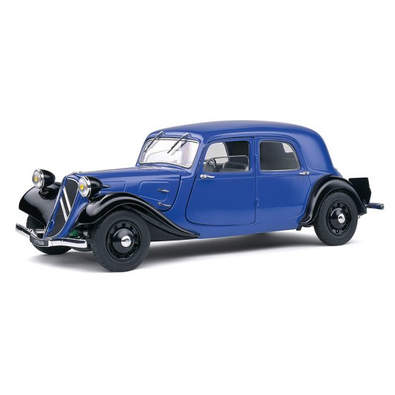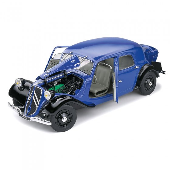 Zo nieuw, zo gedurfd, zo anders dan alles wat we eerder gezien hebben... de pers was lovend over de presentatie van de Traction (voorwielaandrijving) in 1934. En terecht, want het was een technische revolutie. André Citroën durfde het aan om de achterwielaandrijving los te laten en de hele motor en versnellingsbak op de voorwielen te laten rusten. Deze gedetailleerde replica van de beruchte 'gangsterlimousine' van gegoten zink op een schaal van 1:18 van de CITROЁN TRACTION heeft een bestuurbare vooras, en voordeuren, een kofferbak en een motorkap die open kunnen. Lengte: ca. 26 cm. Een tweekleurig juweeltje, niet alleen perfect voor verzamelaars en liefhebbers van legendarische auto's.